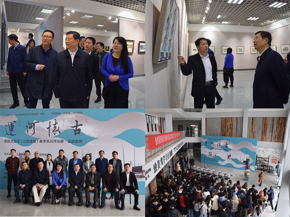 10月16日上午,2019“江苏省高雅艺术进校园”项目之“运河怀古———京杭大运河(江苏流域)美术采风作品展·走进盐师”在盐城师范学院美术与设计学院展厅顺利启幕。我校党委副书记、副校长刘继红,盐城师范学院党委副书记、副校长黄志纯,我校副校长祝兴成、大学生艺术教育中心主任孙婷,盐城师范学院团委副书记、艺术教育中心主任祁佳,我校美术学院副院长路明、党总支副书记孙仕荣,盐城市美术家协会主席李晓东、盐城市油画学会会长朱顺传等出席开幕式。盐城师范学院美术学院院长刘军主持开幕式。