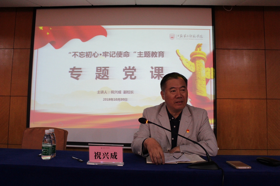 按照“不忘初心、牢记使命”主题教育学习工作安排,10月30日,副校长祝兴成为分管单位美术学院、后勤处和资产经营总公司上题为“严格尽职履责,勇于担当作为”的党课。三个单位的全体党员和美术学院的入党积极分子参加。