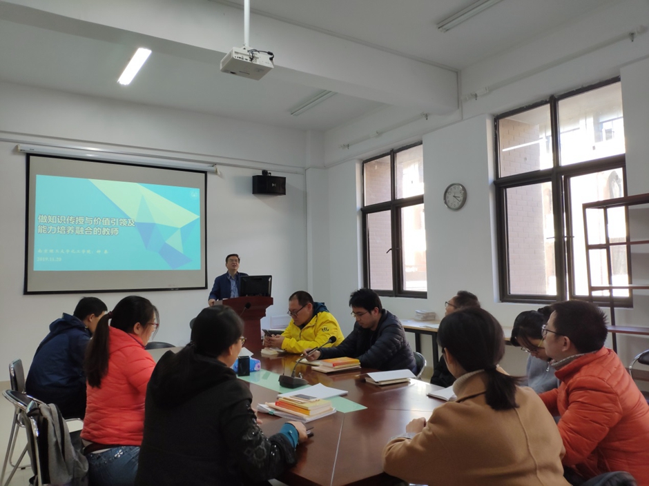 11月20日下午,应生化学院邀请,国家级教学名师、教育部化工专业教学指导委员会委员、南京理工大学钟秦教授来校,为生化学院全体教师作题为“做知识传授与价值引领及能力培养融合的教师”的报告。报告会由副院长杜攀主持。