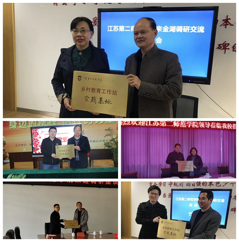 座谈会上,调研组介绍了我校四届定向生招生和培养情况,听取了各教育局、各中小学对我校乡村定向生人才培养的要求和建议。淮安市教育局和下属县(区)分管师资工作的领导介绍了当地中小学布局、教师队伍建设及定向生招生宣传和就业等情况。调研组与各教育局和中小学校长就我校实习方案、选修课程设置和师德养成等定向师范生培养工作展开了热烈的研讨,特别针对首届定向生回生源所在地实习工作的要求和指导教师的安排进行了充分的论证。座谈和研讨后,我校与各教育局、各中小学签署了16个“乡村教育工作站”共建合作协议,并举行了授牌仪式。