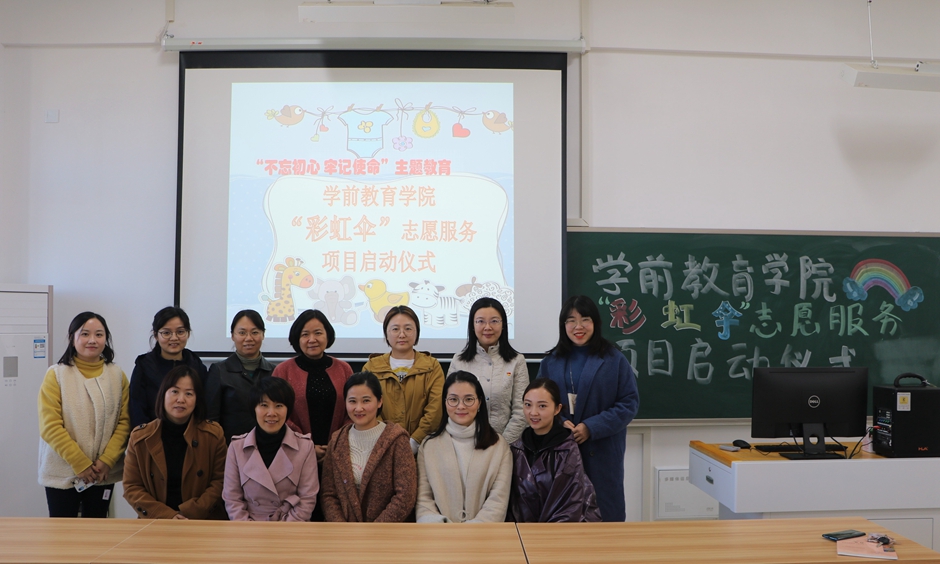 11月20日中午,学前教育学院在石湫校区举办“彩虹伞”志愿服务项目启动仪式,院党总支书记姚苏平、院长田燕、党总支副书记王晶、尹坚勤教授、班主任辅导员代表以及各合作幼儿园园长参加仪式。