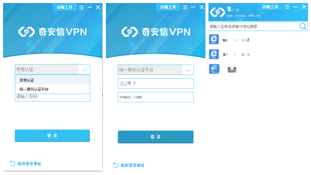 2、打开客户端,网关地址输入:vpn.jssnu.edu.cn