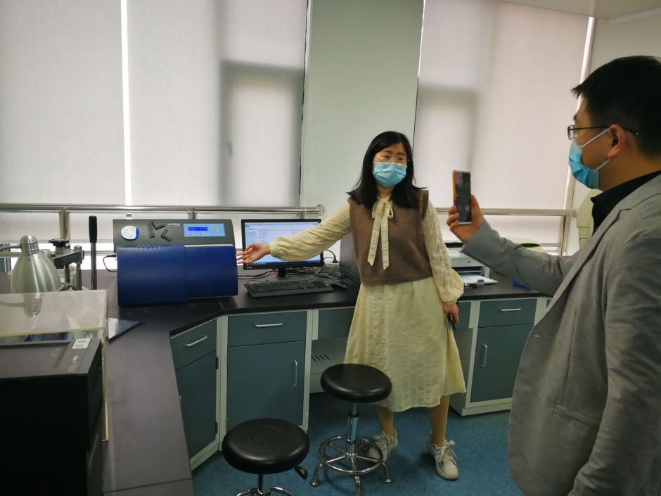 在该公司人力资源部王经理的陪同下,借助腾讯会议直播平台,陈燏化身“直播间主播”,带领直播间另一头的学生、家长一起深入企业内部,了解企业的文化荣誉、公司规模、行业前景及员工福利等,详细参观企业的实验室。“云直播”方式使同学们身临其境,促进同学们对自己的实习实训、就业有了更新的构想。
