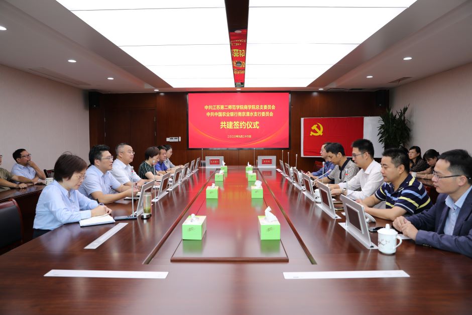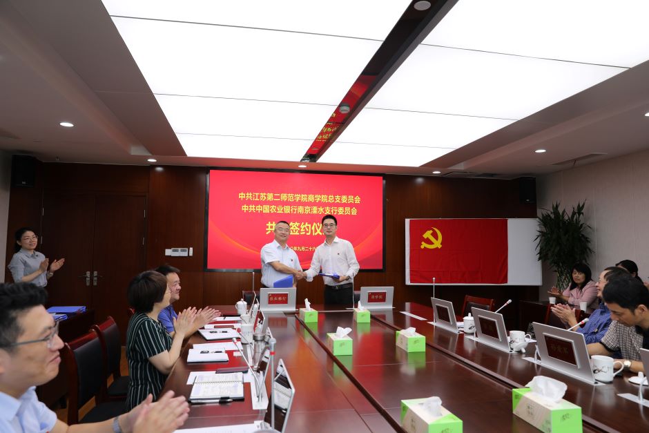商学院党总支与农行南京溧水支行党委、商学院教工党支部、学生党支部分别和该行第五支部签订结对共建协议书。结对双方进行了座谈。
