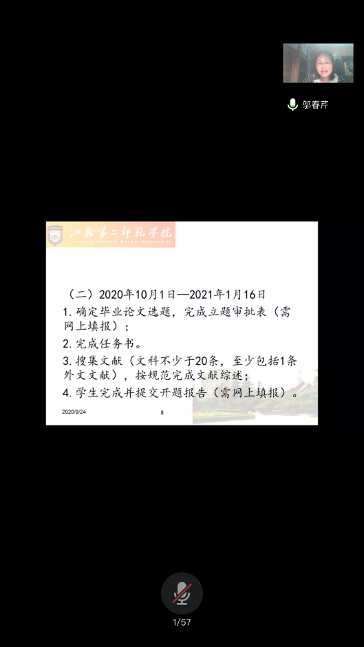为保障教育实习有序实施和毕业论文写作的顺利进行,9月24日,教育科学学院在腾讯会议召开2017级小学教育专业乡村定向班师范生教育实习调研会和毕业论文动员会。院党总支书记王玲玲,副院长郑洁、邬春芹,班主任程世英、任曼曼,教务秘书张文清,17级全体乡村定向师范生参加会议。会议由程世英主持。