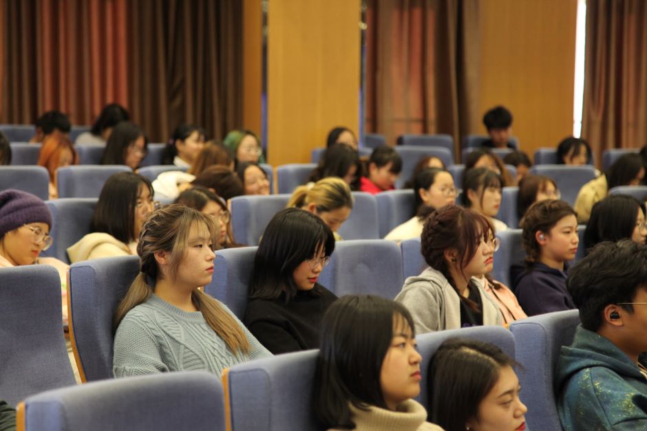 11月11日下午,传媒学院党总支书记蒋向红在草场门校区教育技术楼二楼报告厅,为全体学生开设了一场青马公开课——《培育和践行社会主义核心价值观》暨评建知识培训。