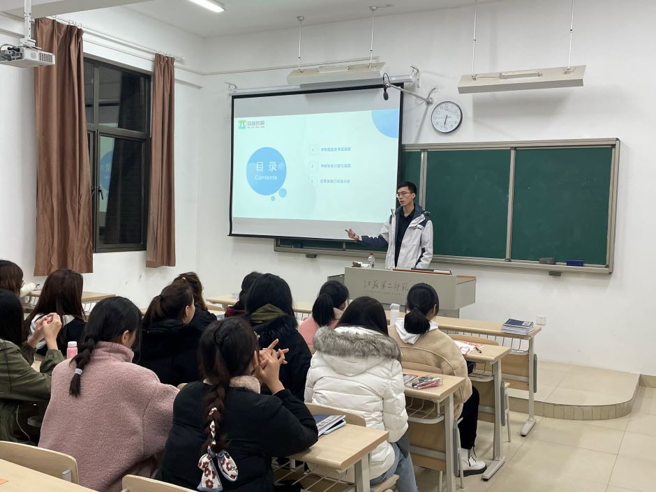 11月24晚,商学院与招就处在石湫校区联合举办考研公益讲座邀,邀请奇林教育的王威老师来校系统介绍考研流程等相关问题。