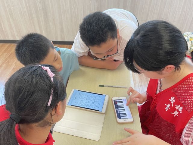 交汇点讯 “姐姐教我弹吧!”下午两点半,南京江东街道银城花园社区的活动室里一片热闹,几个小朋友把大学生志愿者围住,想要听她用手机软件再弹一首歌曲。