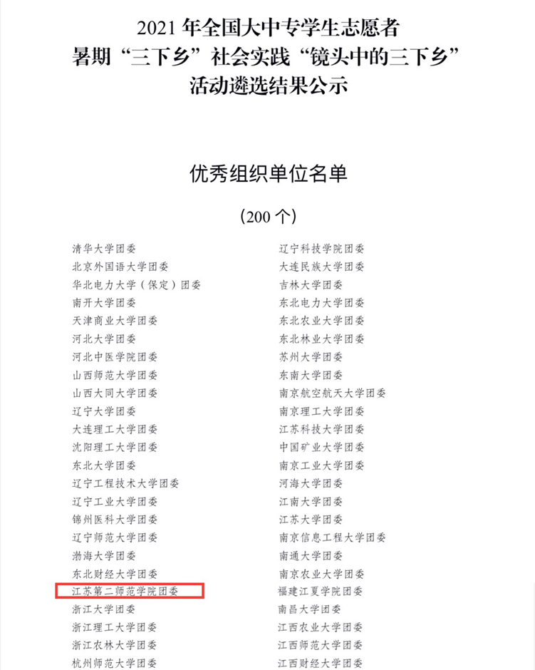 日前,2021年暑期“三下乡”社会实践活动成果评选结果陆续发布,我校一支团队获评全国大中专学生志愿者暑期“三下乡”社会实践优秀团队,三支实践团队荣获“请党放心 强国有我”全国大学生“千校千项”活动团队风采奖,团委获评全国大中专学生志愿者暑期“三下乡”社会实践“镜头中的三下乡”优秀组织单位。