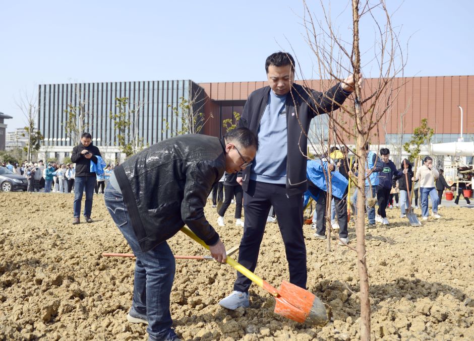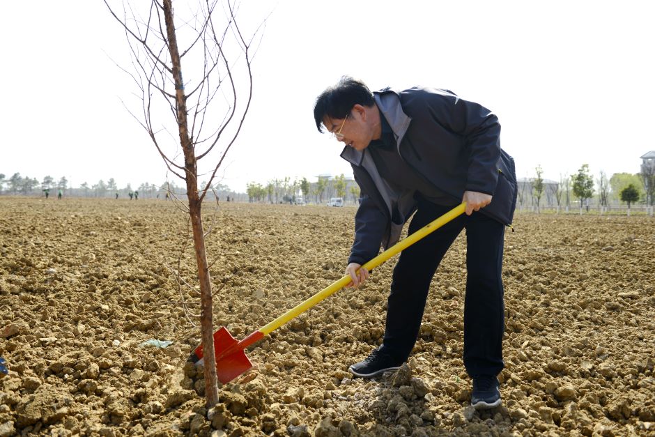 植树点位于石湫校区体育馆南侧,共有4.7万平方米。在植树点,校领导手举铁锹,和师生们一起挥锄铲土,扶苗培土、拎桶浇水,并和师生们亲切交流,询问同学们的学习生活情况。植树活动现场一派热火朝天。