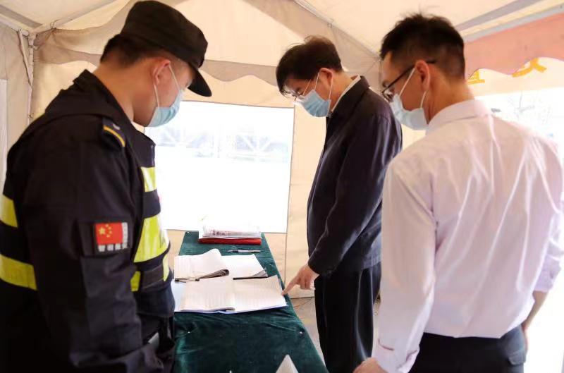 在学校北门,王仁雷一行仔细询问校园封闭情况,检查校园人脸识别门禁系统,查阅出入人员车辆登记和疫情防控档案,听取相关工作汇报,并就存在的问题提出整改意见。王仁雷指出,当前疫情防控形势严峻,校园门岗责任重大,要严格落实进校人员登记、测温、亮码、亮卡等规定,严格执行进校人员审批制度,守好门,把好关,有效切断疫情防控传播途径,构筑校园疫情防控安全屏障。
