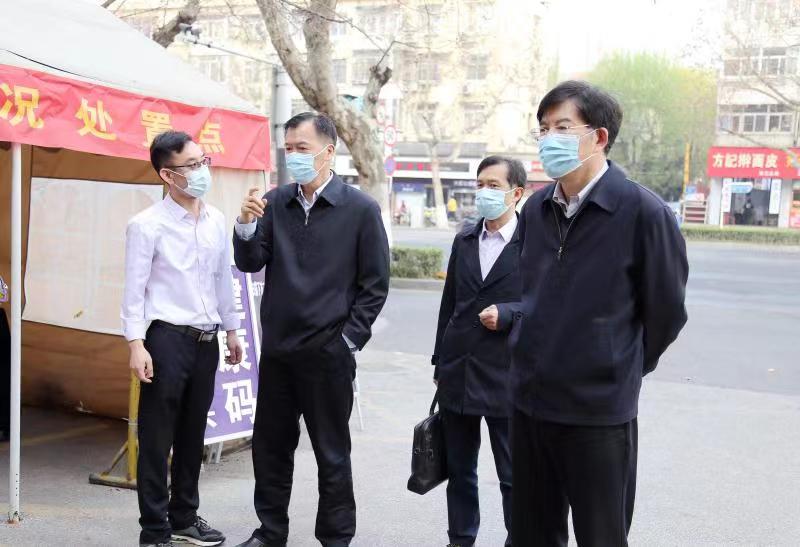 3月16日上午,党委书记王仁雷、副校长祝兴成带队检查草场门校区疫情防控工作,并就防疫措施落实情况进行现场指导。草场门校区防控工作组以及党办校办、学工处、保卫处等部门相关负责人随同检查。