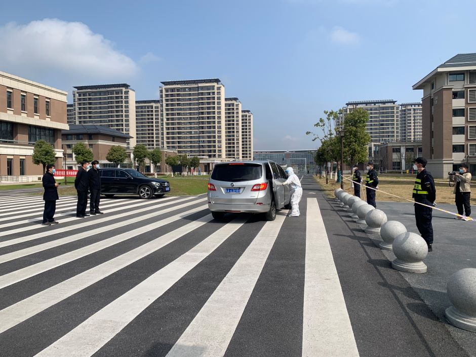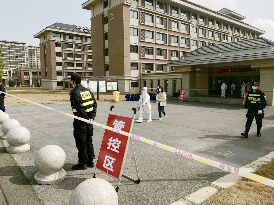 接到紧急通知后,党委书记王仁雷、副校长祝兴成第一时间到达现场指挥,并要求“学校进入突发疫情防控应急状态,请所有师生、员工佩戴好口罩,等候指令。”学校疫情防控10个工作组的人员在5分钟内全部集结,协调工作。“校园临时封闭管理到位!”“人员排查与管控启动!”“校园内已全面开展流调溯源”……现场不时传来相关工作情况汇报。