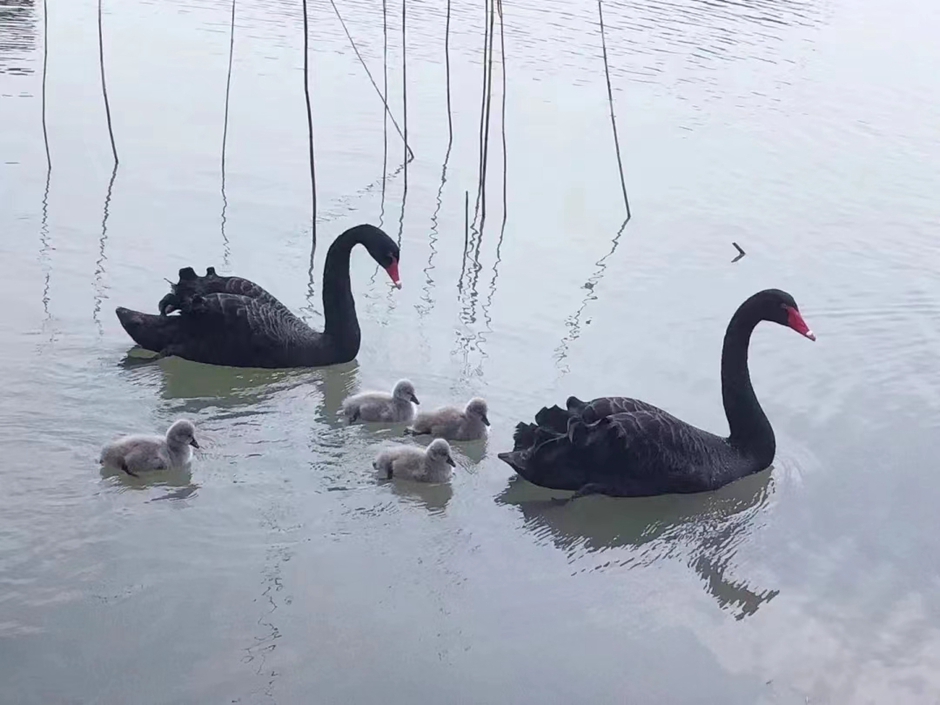 【#加油吧春天的丑小鸭#】春光明媚,江苏第二师范学院石湫校区,湖里的黑天鹅带着一群刚出壳的丑小鸭游来游去,画面太治愈了。为了孵蛋,4只黑天鹅在水中间垒了个窝,就怕被偷了,已经孵出了四只丑小鸭了,就还剩一个蛋了,加油鸭!![[打call]](/_upload/article/images/4e/a8/25c466eb46819e56109957d0e81c/b2f49853-2a32-41bc-9631-05933386fc57.png)