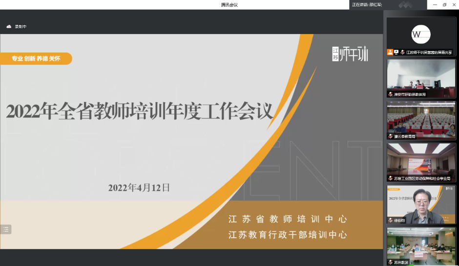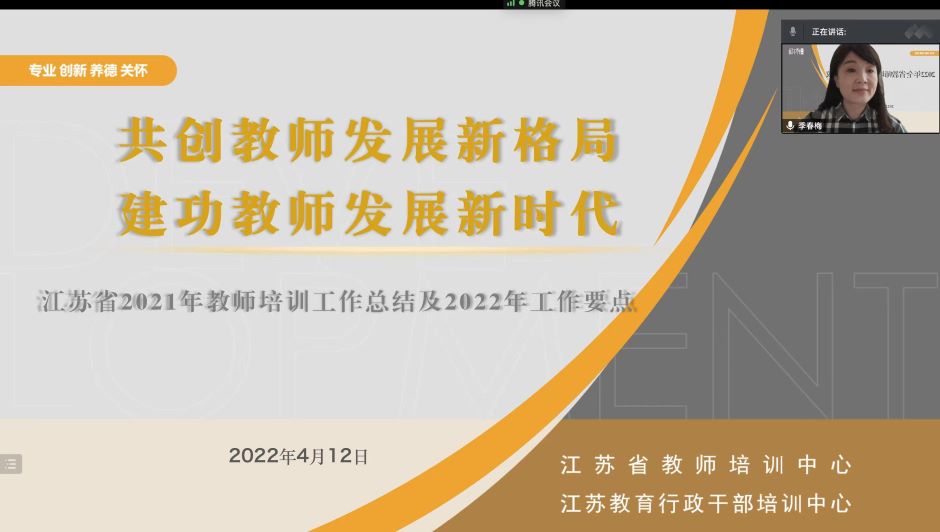 苏州市教师发展学院、扬州市教师发展学院和淮安市教育局三家单位分别就2021年度教师和校长培训工作情况作交流发言。