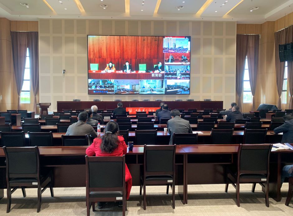 为深入贯彻习近平总书记关于新冠肺炎疫情防控重要指示精神,落实党中央、国务院决策部署,4月14日下午,教育部召开全国教育系统疫情防控工作视频培训会议,教育部应对新冠肺炎疫情工作领导小组办公室主任、体育卫生与艺术教育司司长王登峰主持会议并讲话。我校党委书记王仁雷、校长王建,校领导潘文、祝兴成、姚振标、陈金如及疫情防控各专项工作组负责人在石湫校区敬业楼107报告厅分会场参会收看。