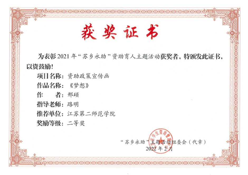 日前,经学校遴选推荐、省教育厅专家评审,我校在2021年“苏乡永助”资助育人主题活动中喜获佳绩。