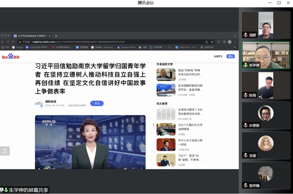 5月18日习近平总书记给南京大学留学归国青年学者的回信在欧美同学会各级各类组织和广大留学人员中引发热烈反响。5月24日,我校欧美同学会在校统战部部长周群的指导下,组织召开了学习《习近平给南京大学留学归国青年学者的回信》线上座谈会,会议由分会秘书长朱学伸主持。