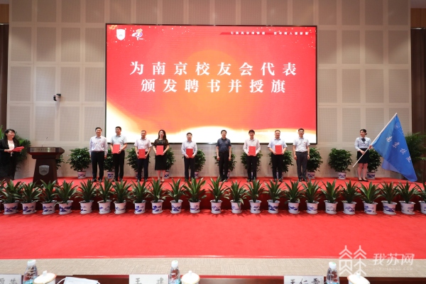 校党委副书记潘文宣读关于成立云南、南京、南通校友会的通知。现场举行了聘书颁发和授旗仪式。