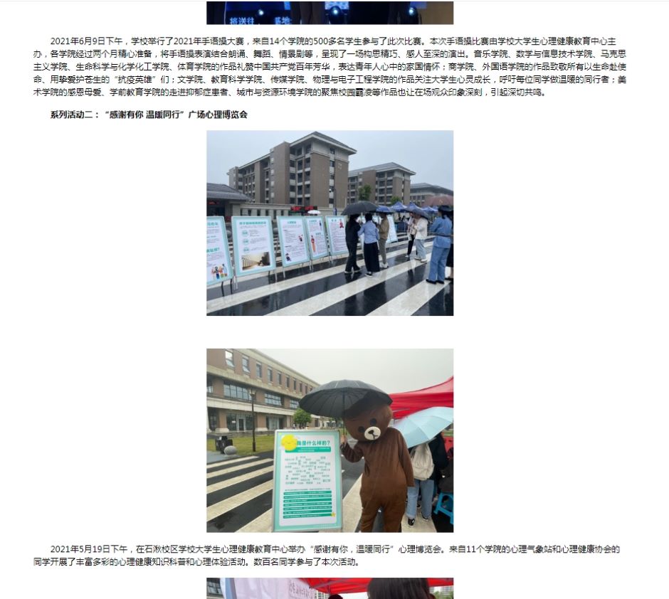本次案例入选,也表明了我校2021年大学生心理健康教育工作开展卓有成效,下一步,我校将进一步加强大学生心理健康教育工作,丰富在校大学生的生活,提升学生心理素养。