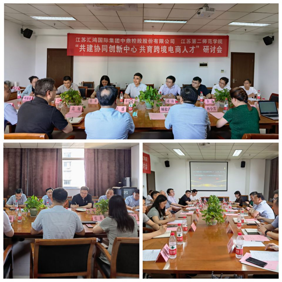 为进一步推进“新文科”建设和“产学研”一体化的人才培养,落实“访企拓岗促就业专项行动”工作要求,8月4日下午,外国语学院联合江苏汇鸿国际集团中鼎控股股份有限公司在草场门校区教科研楼503室共同举办“共建协同创新中心 共育跨境电商人才”专题研讨会。江苏汇鸿国际集团中鼎控股股份有限公司党委书记、董事长吴盛,党委副书记、总经理高翔,副总经理顾松涛、陈蔚等一行七人参加会议。我校党委常委、总会计师、外国语学院联系校领导姚振标,副校长徐国华出席会议,招生就业处处长司南、质评处副处长吴晋、外国语学院领导班子及相关专业负责人、教研室主任参加会议。外国语学院院长张莉主持会议。
