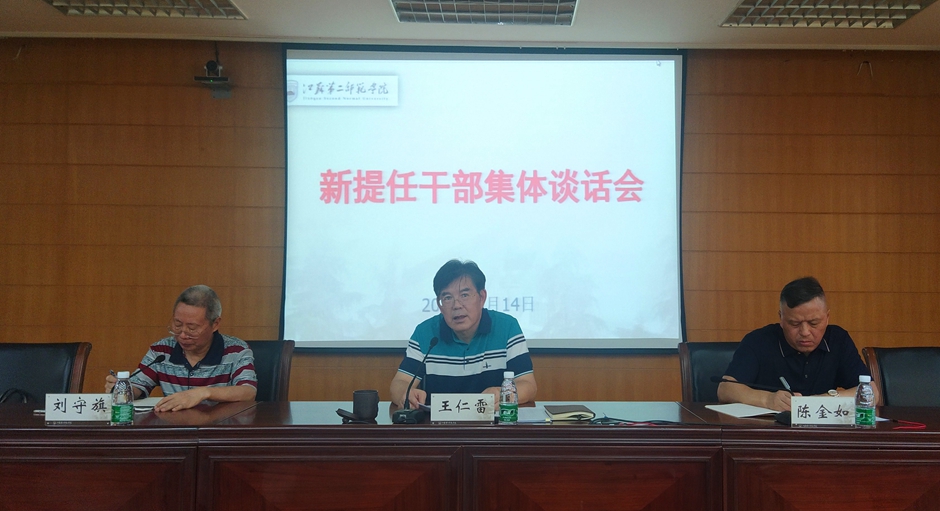 8月14日上午,我校在草场门校区教育科研楼511会议室召开新提任中层干部集体谈话会议。校党委书记王仁雷,常委副校长、原纪委书记陈金如,党委常委、原组织部部长刘守旗出席会议,全体新提任中层干部参加会议。会议由王仁雷主持。