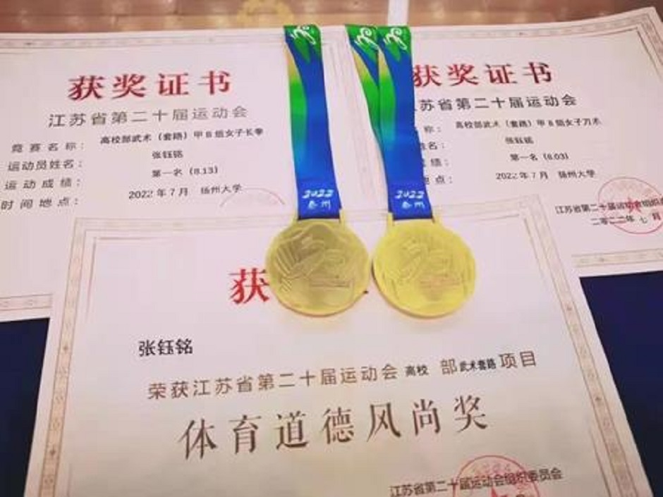 9月5日下午,江苏省第二十届运动会在泰州体育公园落下帷幕。本届省运会高校部的比赛共设置22个大项,来自省内的62所高校参与其中,我校共派出11名教练员、37名运动员参加了其中的健美操、武术、羽毛球、乒乓球、飞镖5个大项的角逐。比赛期间,各参赛队伍的教练员和运动员克服疫情和高温影响,艰苦训练,积极备战。在校领导和相关部门的关心支持下,我校代表团发扬二师精神,在比赛中以饱满的热情、昂扬的斗志,取得我校参赛历史上的最佳成绩。最终,获得花球自选啦啦操第五;武术两金一银一铜;羽毛球甲B组女子团体亚军、单打第四、女子双打第六、混合双打第八、团体总分第六;乒乓球混合双打第一名;飞镖男子单人赛第八名等单项奖和团体总分72分的成绩,并获得“体育道德风尚奖”。