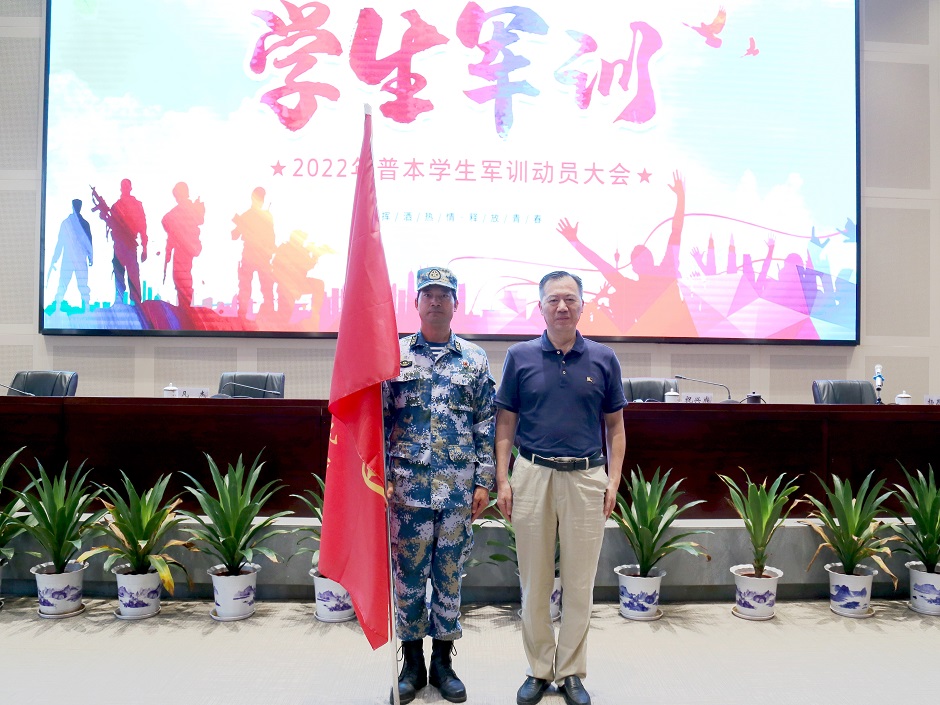 会上,举行了军训团团旗授旗仪式。祝兴成表达了对承训单位的感激和对训练有素教官们的肯定,希望同学们以此为榜样,学习军人风范,遵守秩序,磨炼意志。