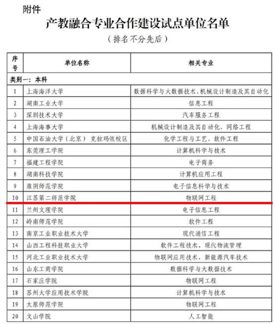 9月15日,工信部公布了国家级第一批产教融合专业合作建设试点单位,我校依托物联网工程专业成功入选,全国共有23个本科院校获批试点单位。
