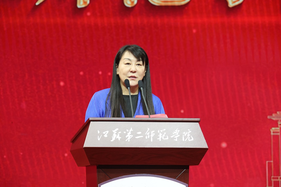 校友代表、江苏省特级教师、常州市武进区星河实验小学教育集团总校长、原教管系2005届毕业生庄惠芬饱含深情地回忆了母校求学生涯的点点滴滴,希望大家播下“时代大先生”之梦想,谱写“相信望远镜”之规划,攀登“人生珠穆朗玛”之勇气,珍惜大学美好时光,精进学业,投身实践,争做新时代江苏二师精神的传承者和奋斗者。