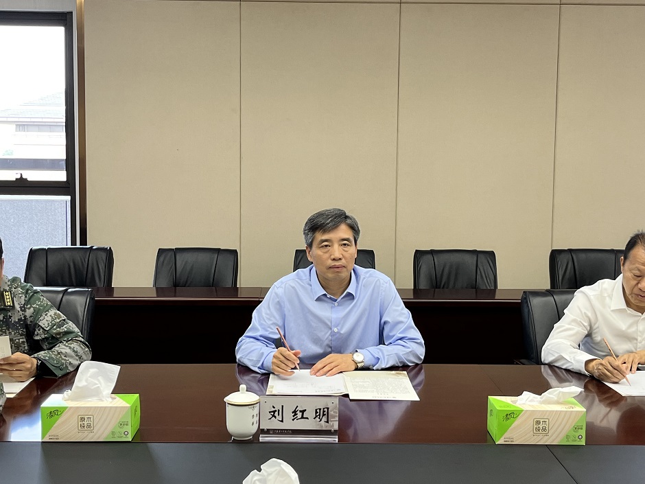 王建代表我校对刘红明一行表示热烈欢迎,并介绍了我校近年发展的基本情况,对海事学院承接我校2022年学生军训工作表示感谢。 刘红明介绍了江苏海事职业技术学院的办学特色和成绩,表示本次军训工作是两校今后开展进一步交流合作的良好开端。