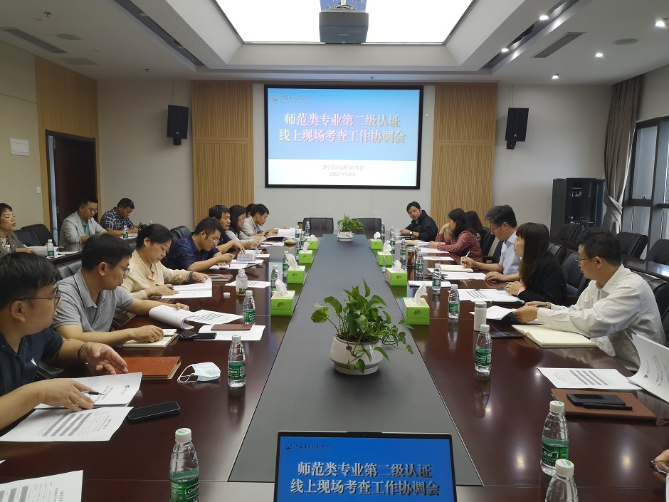 9月28日上午,我校在石湫校区崇德楼318会议室召开师范类专业第二级认证线上现场考查工作协调会。校长王建出席会议,地理科学、英语专业认证工作团队,相关职能部门负责人参加会议。会议由教务处、教学质量监测与评估处处长陈蓓主持。