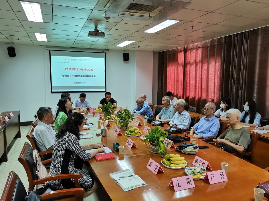 9月30日上午,文学院联合离退休处在草场门校区教科研楼503会议室,举行以“共续情谊 共话发展”为主题的文学院人才培养暨学院发展恳谈会,文学院10位离退休教师代表参加座谈。校党委副书记、副校长刘继红,校关工委副主任周成平,离退休处处长冯颖,副处长陈艳出席会议。文学院院长姚苏平、副院长陈进武、副院长邵天松、院党政办副主任史俊超,及姚徽、朱仙林、王珏、马炜、周翔、张贺等20余名教师和学生代表参加会议。恳谈会由文学院党总支书记刘莹主持。