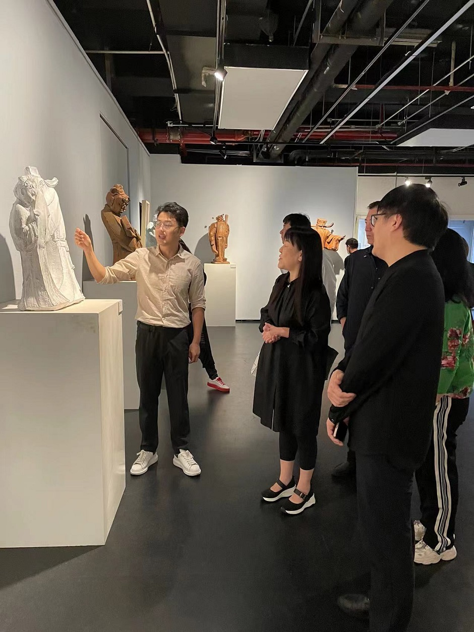 9月28日下午,党委副书记、副校长刘继红,副校长祝兴成在相关职能部门负责人及美术学院领导班子的陪同下到江苏省美术馆参观“境·观——李楚洋谢渊双个展”,江苏省美术馆副馆长栾剑全程陪同并参观。此次展览由江苏省美术馆主办、江苏第二师范学院协办,是美术学院美术学专业省级一流建设的阶段性成果,刘继红、祝兴成对两位青年教师的成果给予充分肯定和高度评价。展览充分体现了美术学院教学团队的优良师资建设状况,是美术学院青年教师为我校70周年校庆的一次献礼。