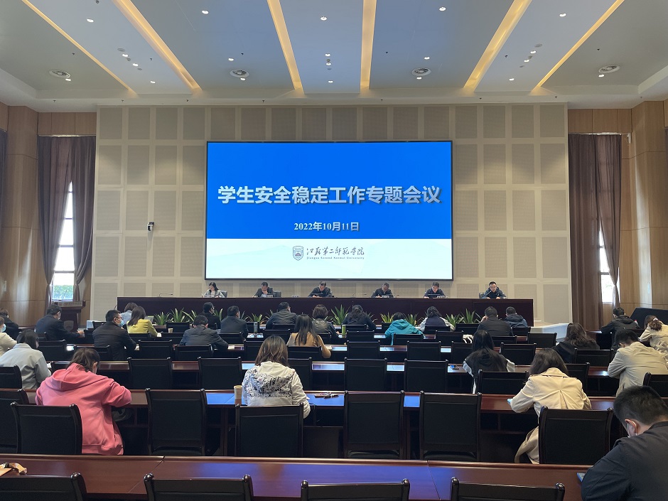 会议首先传达了近期省教育厅关于高校安全稳定和学生管理工作的相关要求。党委宣传部、教务处、后勤与基建处、党委保卫部、党委学工部分别从各自职能出发,通报目前学生工作安全方面存在的问题,并对后续工作进行部署。