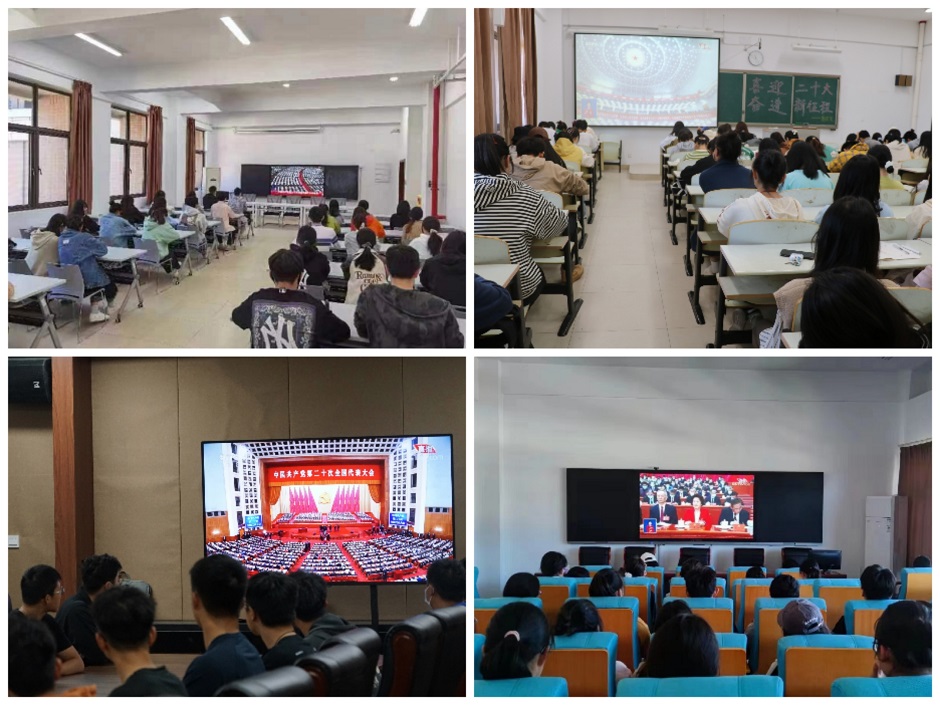 在石湫校区107报告厅,各学院学生代表集体观看了开幕会直播。同学们认真观看聆听习近平总书记的报告,进一步了解了过去十年我国在经济、政治、社会、文化、生态环境等各个方面取得的巨大发展成就和国家未来发展战略,深切体悟了习近平总书记对广大青年的殷切期待和寄予厚望,接受了一次深刻的精神洗礼和觉悟提升。