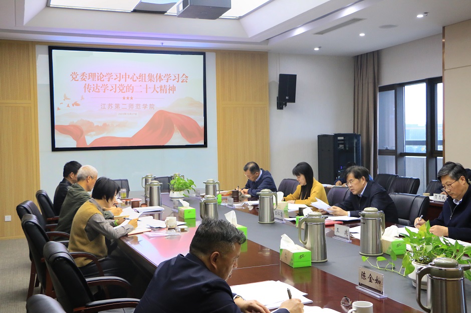 10月27日上午,我校召开党委理论学习中心组(扩大)学习会,传达学习党的二十大精神,对全校深入学习宣传贯彻二十大精神作出全面动员部署。校党委理论学习中心组成员,部分职能部门和马克思主义学院主要负责同志参加学习。会议由党委书记王仁雷主持。
