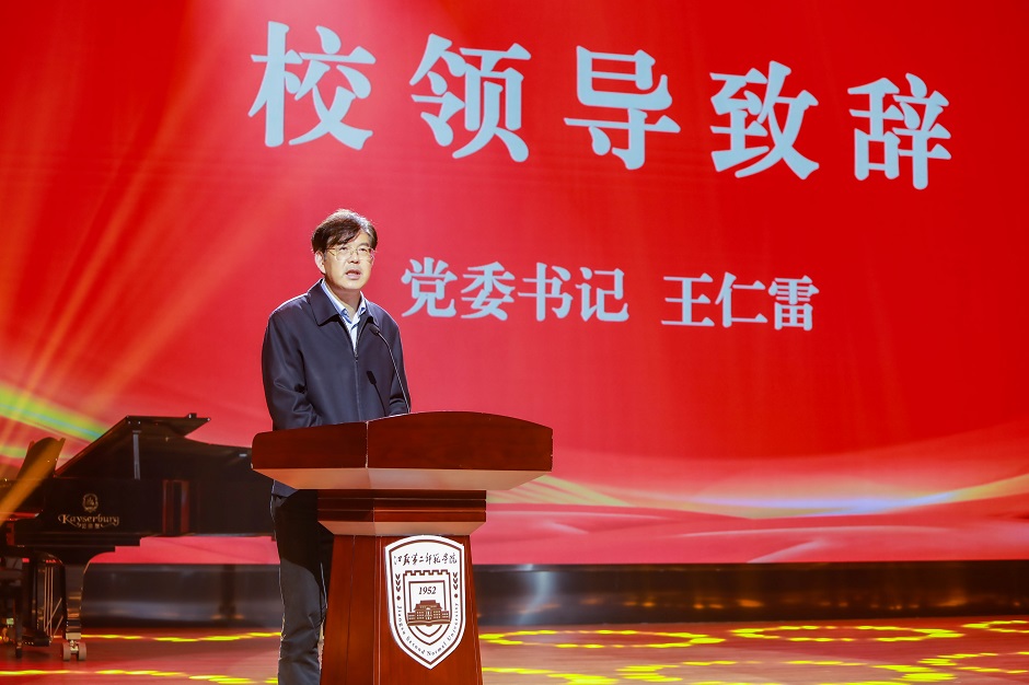 王仁雷致辞。他指出,举办此次“盛世风华向未来”舞台思政课暨师生诵读会,其目的在于激发我校广大师生热烈庆祝党的二十大胜利召开、深刻领会党的二十大核心要义和精神实质,进一步坚定全面建设社会主义现代化国家、全面推进中华民族伟大复兴的强大信心。他对我校进一步深入学习领会党的二十大精神提出具体要求。他强调,还有不到一个月,我们将隆重举办建校七十周年发展大会,全校上下要结合七十周年校庆和学校未来事业发展,深入学习贯彻落实党的二十大精神,凝聚人心、汇聚共识,集聚资源、扩大影响,总结过去、谋划未来,全面推动学校各项事业发展,为学校历史翻开崭新的一页。
