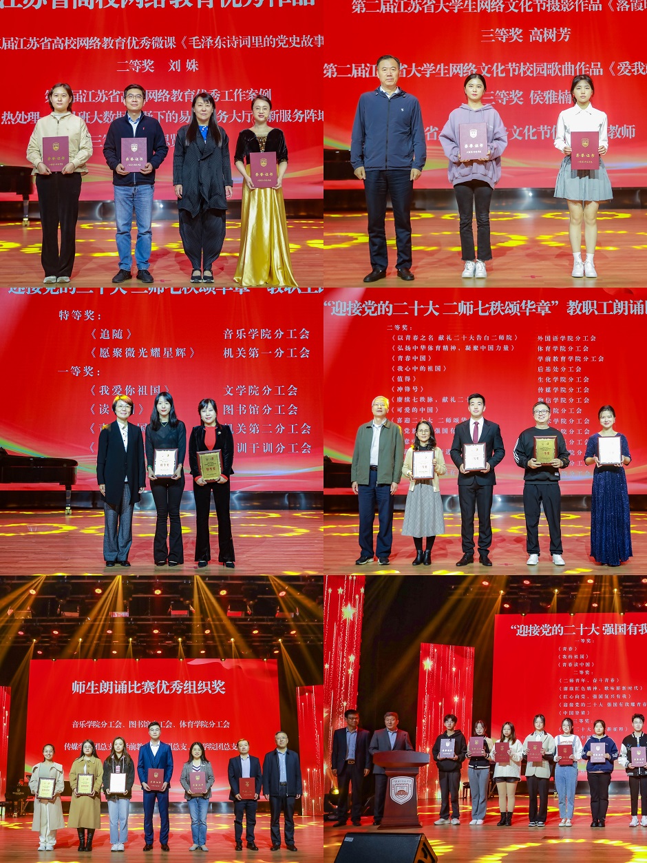 诵读会上,校领导分别为获得“江苏高校百校万名团干部思政技能大比武”奖、“江苏省高校网络教育优秀作品”奖等一系列在思政建设方面取得优异成绩的获奖者颁奖。