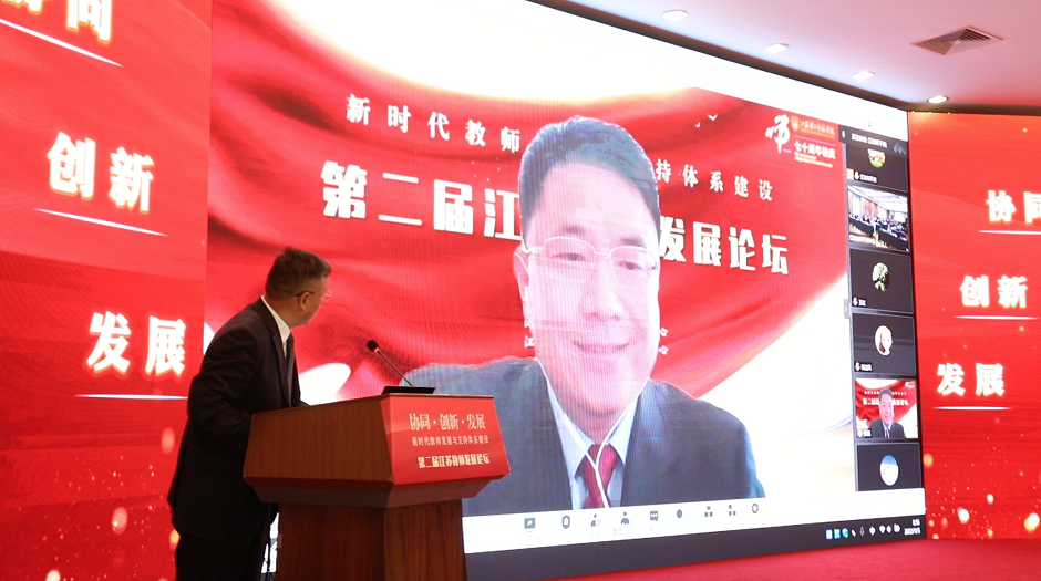 宋磊作《支持教师专业发展 建强基础教育教师队伍》的论坛主旨报告。他指出,党的二十大报告系统描述了当前我国教育工作取得的成绩、存在的问题和未来的努力方向。加快建设高质量教师教育体系,首先要全面理解教师队伍建设的基础地位,领会好总书记的“新师说”,肯定教师的重要作用,明确“好老师”的标准和要求,确立教师队伍建设的战略地位,全面部署教师队伍建设工作,加强教师教育体系建设。他代表青海省教育厅对江苏省对口支援青海教育事业发展表示感谢。