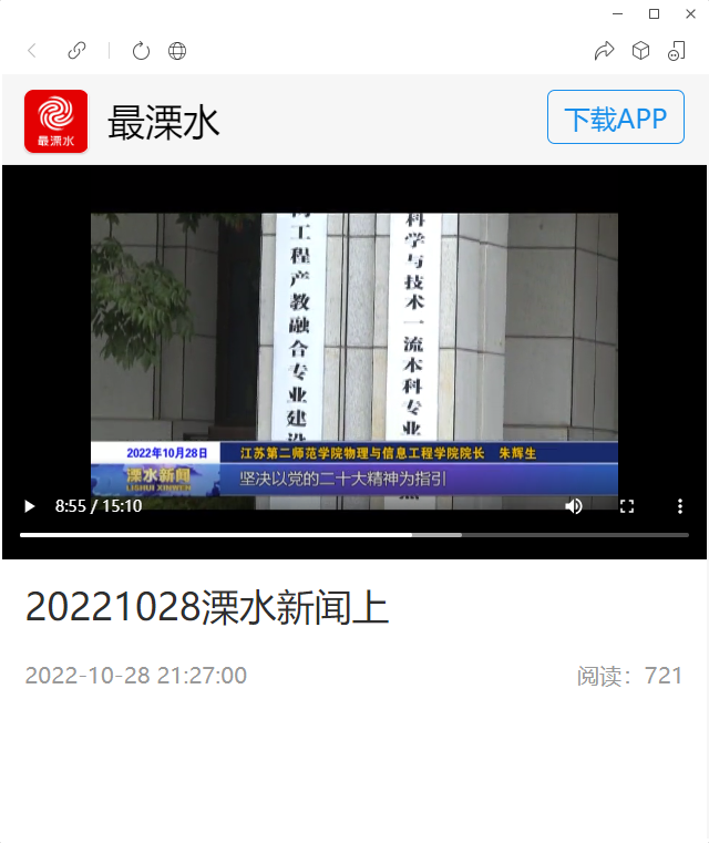 10月28日,最溧水新闻客户端《溧水新闻上》栏目8’38’’-9’43’’报道我校物理与信息工程学院院长朱辉生教授和2019级计算机科学与技术班学生党员邵鑫宇学习党的二十大精神反响。