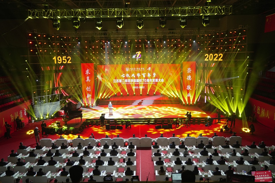 七十载峥嵘岁月哺育二十万桃李芬芳。忆往昔,艰苦创业弦歌不辍迎来硕果满枝;看今朝,薪火相传踔厉奋发谱写崭新篇章。11月19日,江苏二师校园里,鲜花盛开,彩旗飘扬,群贤毕至,少长咸集,处处洋溢着喜庆热烈的气氛。上午10时,建校七十周年发展大会在石湫校区体育馆隆重举行。
