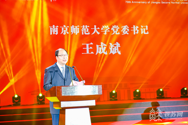 南京师范大学党委书记王成斌致辞,向江苏二师建校70周年表示热烈的祝贺。他指出,70年来,江苏二师坚守为党育人初心,践行为国育才使命,为江苏乃至全国的基础教育事业和经济社会发展输送了一大批优秀人才,作出了重要贡献。他表示,双方根脉相连、文化相通,在长期的合作办学进程中,建立了情同手足的深厚情谊,希望两校加强合作、携手共进,为江苏教育强省建设和我国高等教育事业发展,为全面建设社会主义现代化强国作出新的更大贡献。