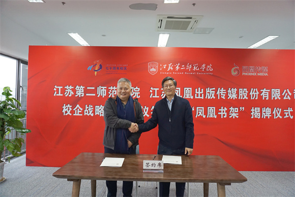 11月19日,江苏第二师范学院与江苏凤凰出版传媒股份有限公司签订校企战略合作协议,江苏省师范生培养体量最大的院校与教材出版行业龙头企业开启了共同探索校企协同培育教师教育的新模式。江苏第二师范学院校长王建和江苏凤凰出版传媒股份有限公司总经理佘江涛共同签订了校企战略合作协议。