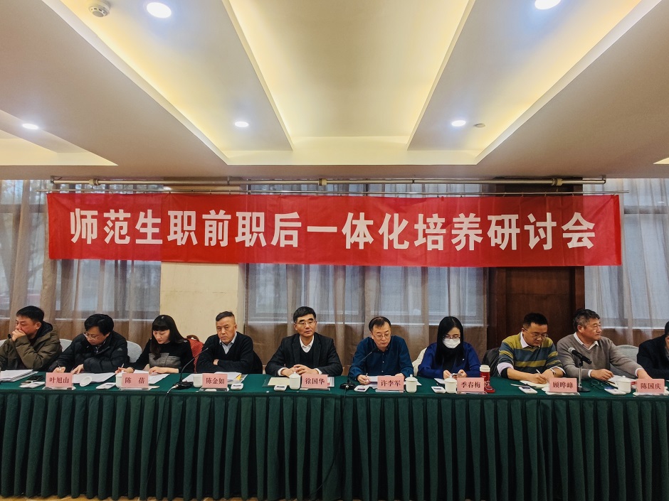 为推进教师教育联动发展共同体建设,汇集基础教育优质资源在师范生协同培养中的积极作用,12月9日下午,我校举办师范生职前职后一体化培养研讨会。副校长徐国华、陈金如,江苏省教育厅教师工作处三级调研员许李军,江苏省师干训中心常务副主任季春梅,教务处、教学质量监测与评估处处长陈蓓,教师教学发展中心主任顾晔峰,继续教育学院院长陈国庆出席会议。参加会议的还有南京市教育局、教师发展中心领导,定向师范生培养教育局领导,各中小学、幼儿园领导,我校相关二级学院领导以及教务处、教师教学发展中心相关人员。会议由陈金如主持。