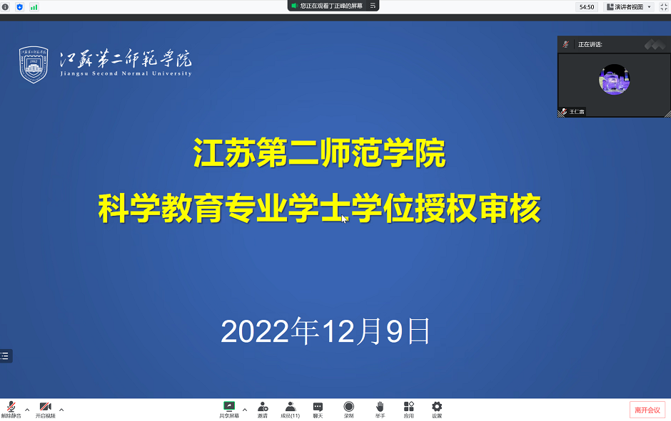 12月9日,根据《省学位委员会办公室关于进一步做好学士学位授权审核工作的通知》(苏学位办〔2021〕18号)、《省学位办关于做好新增学士学位授权专业审核和辅修学士学位备案线上申报工作的通知》(苏学位办函〔2022〕20号)要求,我校组织汉语国际教育、科学教育和食品科学与工程专业开展学士学位授权专业线上实地评审工作。校外专家组,校党委书记王仁雷、党委副书记潘文、副校长徐国华,三个专业迎评工作团队和相关职能部门人员参加实地评审工作。