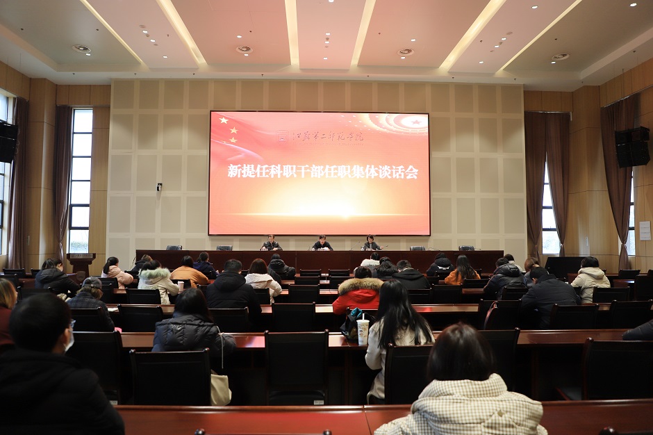 2月11日下午,我校在石湫校区敬业楼107会议室召开了新提任科职干部集体谈话会议。党委书记王仁雷、纪委书记崔燕出席会议并讲话,党委常委、党委组织部、党委统战部部长张其飞主持会议并宣读了任职文件,全体新提任科职干部参加会议。