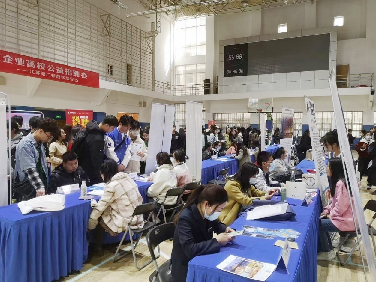 为及时把握春招先机,搭建高校毕业生与企业供需平台,3月14日下午,我校招生就业处联合南京市秦淮区人力资源和社会保障局、建邺区人力资源和社会保障局,于草场门校区体育馆举办“秦淮区、建邺区重点企业高校公益招聘会——江苏第二师范学院专场”招聘会,招就处处长司南、副处长李佶莲全程参与此次活动。本次招聘会为秦淮区首届“城”聘会、建邺区“人才邺市”校园行招聘系列活动之一,是秦淮区、建邺区两区首次联合与我校合作,为促进我校毕业生高质量就业开辟了新渠道。