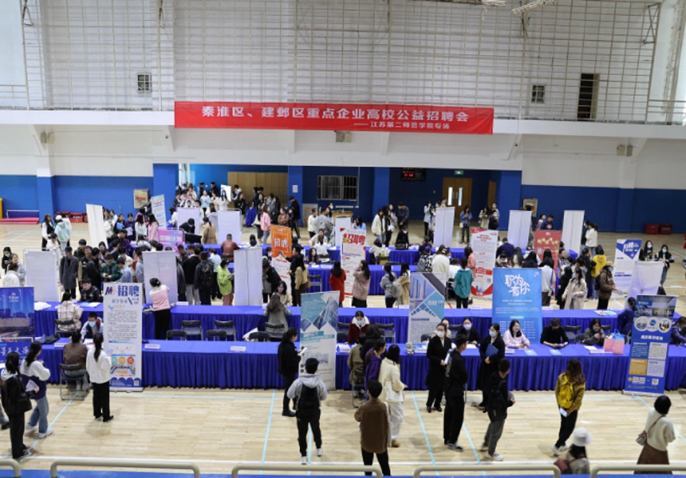 学校也正多方开拓资源,为学生就业打开更大空间。记者了解到,本次招聘会为秦淮区首届“城”聘会、建邺区“人才邺市”校园行招聘系列活动之一,由秦淮区人力资源和社会保障局、建邺区人力资源和社会保障局和江苏第二师范学院主办,也是两区首次联合与学校合作,34家秦淮区、建邺区重点企业参加,涵盖了职业教育、计算机信息技术、生物医药、商贸、住宿餐饮等领域,涉及教育类、计算机类、生物类、贸易类、酒店管理类等相关专业,为毕业生提供近140个岗位,需求人数近400人。
