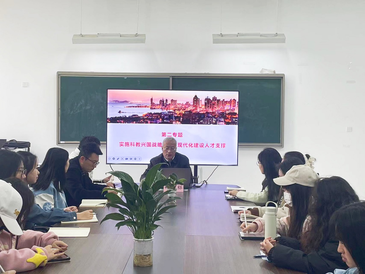 首先,姚振标结合时政热点,围绕“实施科教兴国战略,强化现代化建设人才支撑”与在场同学进行交流和探讨。他从办好人民满意的教育、完善科技创新体系、加快实施创新驱动发展战略、深入实施人才强国战略四个方面,结合丰富案例和大量数据,深入浅出地为同学们分析了正是因为科教兴国战略的启动与实施,我国才在科教领域取得较快发展,并为国民经济加快发展提供了强有力的动力支持。